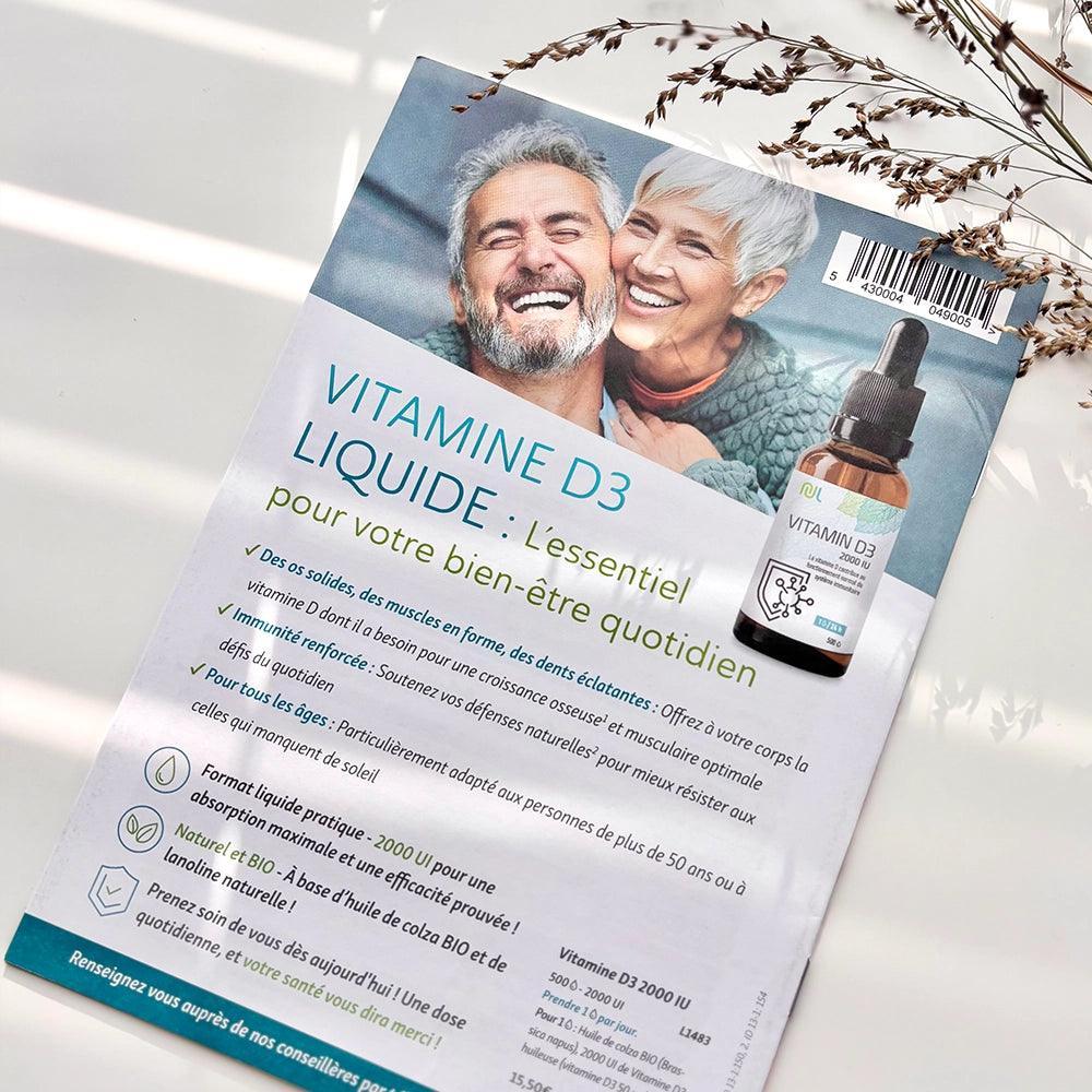 La vitamina D3 2000 UI è un integratore liquido naturale derivato dalla lanolina, combinato con olio di colza biologico per un'assimilazione ottimale. Contribuisce alla salute di ossa, muscoli e denti e sostiene il sistema immunitario.