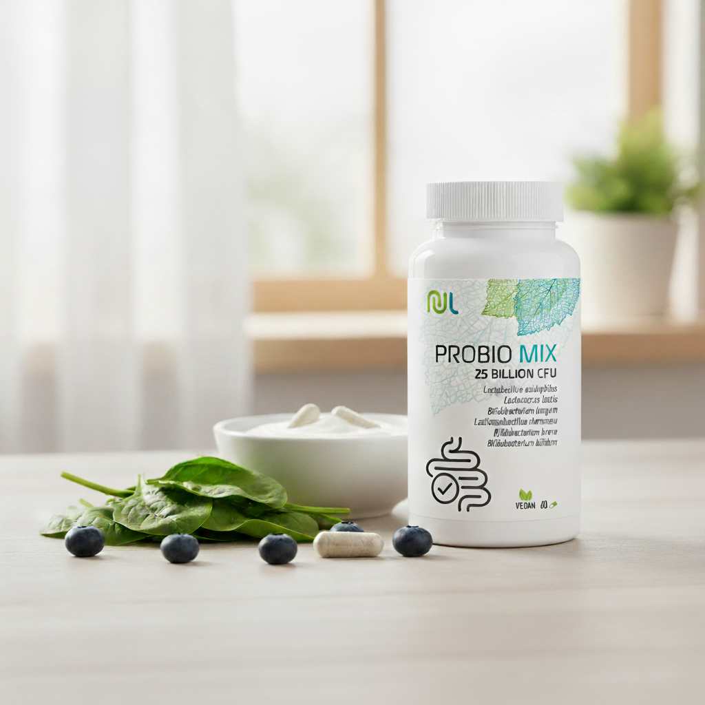 PROBIO MIX® combina 25 miliardi di UFC e 6 ceppi sinergici per riequilibrare in modo sostenibile il microbiota intestinale. La sua tecnologia gastroresistente garantisce un'efficacia ottimale per la digestione e il sistema immunitario.
